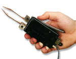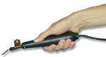 The TW-110A Pliers are designed for small spotwelding applications and are ideally suited for cross wire welding up to 0.04" diameter. The pliers come equipped with a built-in weld initiating switch, 36" flexible leads, and utilizes the patented Tweezer- Weld cantilever spring design. Features: · Ergonomic Design · Ease of Use · Reliability · Portability · Flexible & Adaptable for Multiple Applications Applications: · Small Electronic Assemblies · Small Spot Welding Applications · Foil Welding · Battery Tabbing · Cross Wire Welding Specs: Kva Range 250 W.S. stored energy/3KVa Electrode Force 3 to 12 lbs. Dimensions 2.75" H x 1" W x 9" L Electrode Size 3/16" Diameter Throat Depth 2.75" Timer Initiation Micro Switch The TW-103 Pencil is designed for applicationswhere the work is placed against a platen which is one side of the welding circuit. The Pencil also incorporates the patented Tweezer-Weld cantilever spring design. When the correct pressure is reached, the micro switch automatically closes and initiates the weld sequence. Specs: Kva Range up to 5 Kva Electrode Force 3 to 12 lbs. Dimensions 1.75" W x 10" L Electrode Size 3/16" diameter Timer Initiation Micro Switch The TW-105 Pencil is designed for series or parallel gap welding where materials can be welded from one side only. The Pencil utilizes the patented Tweezer-Weld cantilever spring design. Specs: Kva Range up to 5 Kva Electrode Force 3 to 12 lbs. Dimensions 2" W x 9" L Electrode Size 1/8" sq. RWMA Class 2 Electrode Gap 0.005" to 0.075" Timer Initiation Micro Switch. |