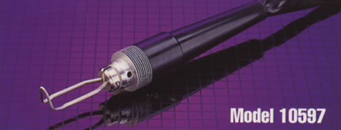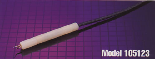 Replacement Electrodes/Elements: Model 10531 Kit (consists of 10’ (2.54 m) of # 29 gauge Nickel-Chromium wire). Replace element as follows: using a small soldering iron, carefully heat each probe end and remove from element by pulling gently with a pair of tweezers. Form a new element similar in shape (3/8” long each side), flux and pre-tin each leg of the element, reheat Probe and insert element legs (one at a time). Rinse off flux in warm water.
