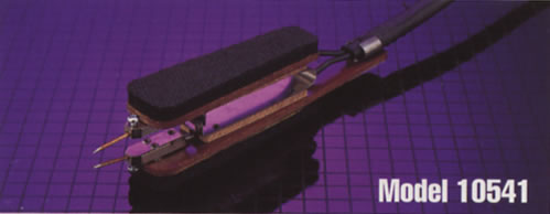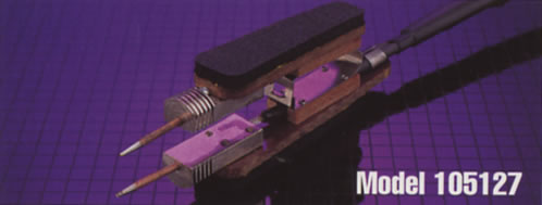 Uses: These handpieces provide instant localized heat that can be applied in prototyping, R&D and production applications. They can be used to create accurate, trustworthy solder joints in extremely delicate soldering applications. Model 10541 is designed for perfect contact and control on micro-miniature setups. Model 105133 is designed for work on wire 22-gauge and finer. Both handpieces provide fast, repetitive joint soldering on terminals, BNC connectors and similar-sized applications. Dual metal electrodes may be bent, shaped or notched for special applications Recommended Power Units: The following UHPS power units may be used with these handpieces: Model 105A3 (100 Watt): Model 105A12 (250 Watt)(use lower settings for 105133). The use of a footswitch (Model 10519) for ease of heating time adjustment and control is recommended.