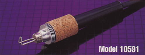 Description: Micro-soldering probe. This Handpiece is supplied with a replaceable element loop of .012” (.30 mm) dia. Nickel-Chromium wire. It is equipped with a four-foot highly flexible, lightweight cord with taper pin quick connect terminals, for connection to Power Units (push in turning clockwise until snug). The lightweight handle is made from turned down nylon and measures 3-1/4” (8.26 cm) long.