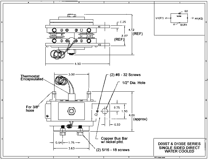 SCI's HS-6 design switches are available with either 3/8 " or 1/2" water hose connections. As always, thermostats, MOV's and R/C snubbers are easily added.