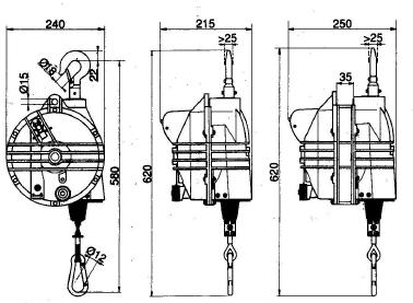 - A safety device to prevent the dropping of the load in case of breakdown in the balancer and prevent potential injury. The precision guided cable cable is wound in order to avoid entanglement and jamming. The locking device is controlled from the floor for instant clamping and release. Ribbed and sealed monobloc construction in aluminum alloy, optimum safety and sturdiness. Inert spring drum assembly for ease of replacement. Upper suspension with rotary safety hook. Cable guide in anti-frictional material. Taper drum rotating on ball bearings. Tension adjustment allows the capacity to be adjusted by means of a worm screw. Electrically insulated suspension system.