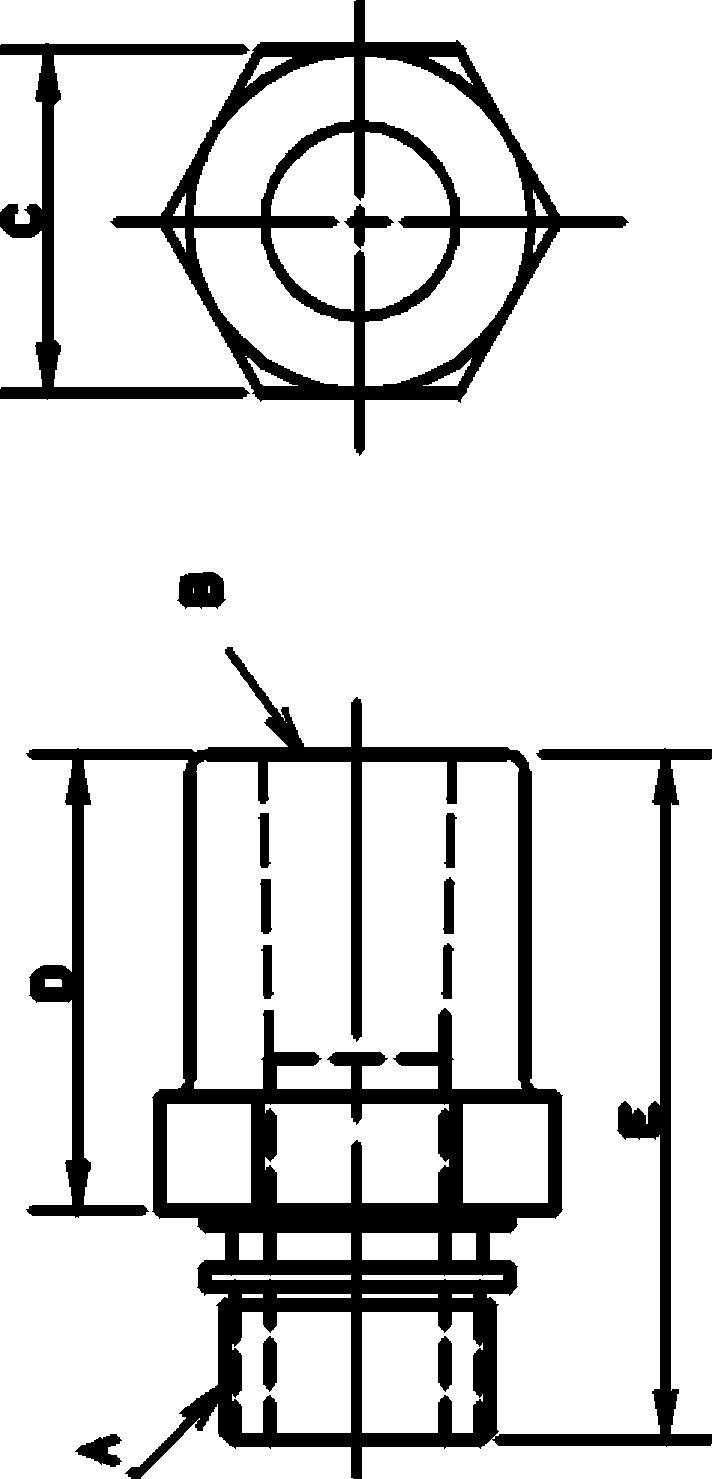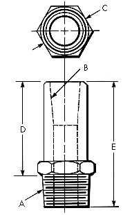 EX. B - HEX ADAPTER WITH THREAD (PIPE THREAD - TOP, FINE THREAD - BOTTOM) |
