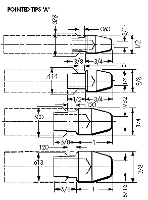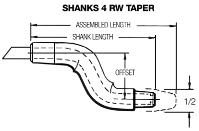 Build your own SHANK by simply choosing from the available options. EXAMPLE: TP-2411-08This would provide you with a Straight Shank for a Female Cap, with a Shank length of 1 inch and an assembled length of 1-3/4 inches, with a RW Taper of 5RW. The offset, if desired, is added after a dash at the end of a model code.
