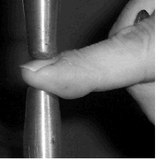 SECOND IDEA: They then decided to install a ring guard system. With this type of guard, a wire loop on the end of a rod is set around the top welding electrode. The loop is sent downward at the beginning of each weld before the electrode starts to move. The electrode will not close if the loop stops short of a set distance (as would happen if the loop contacted a finger).
